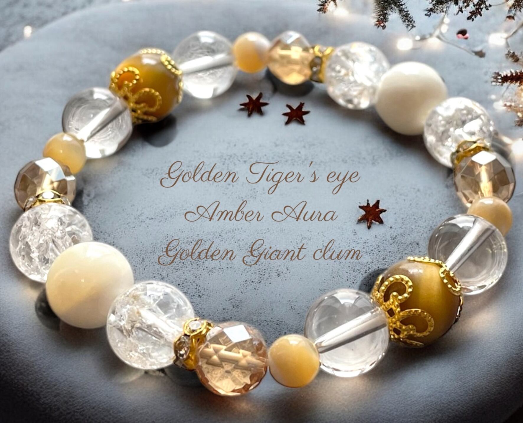 ゴールデンタイガーアイ golden giant clam 天然石 パワーストーン ブレスレット